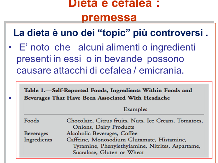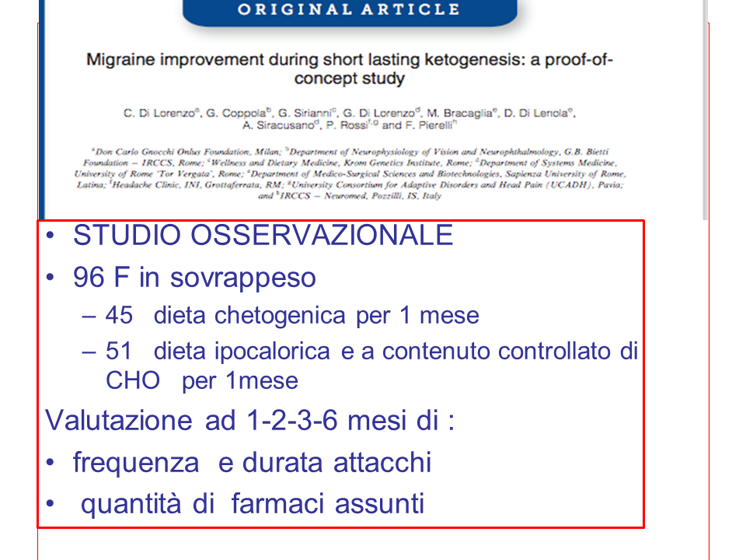 Dieta frazionata nel soggetto iperinsulinemico cefalalgico: la nostra casistica