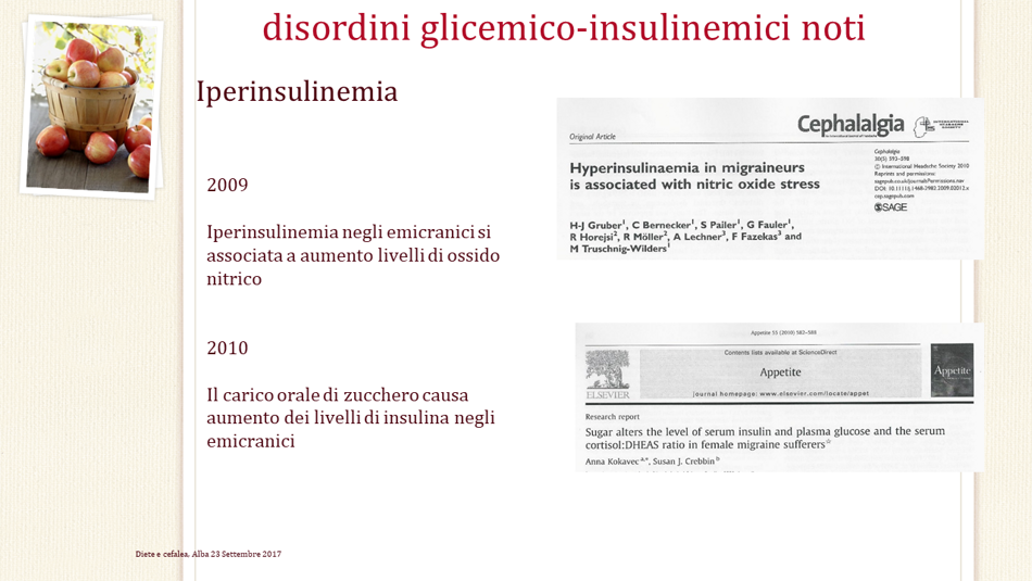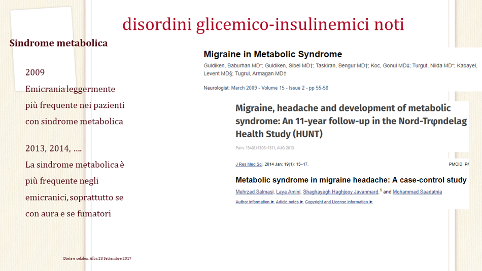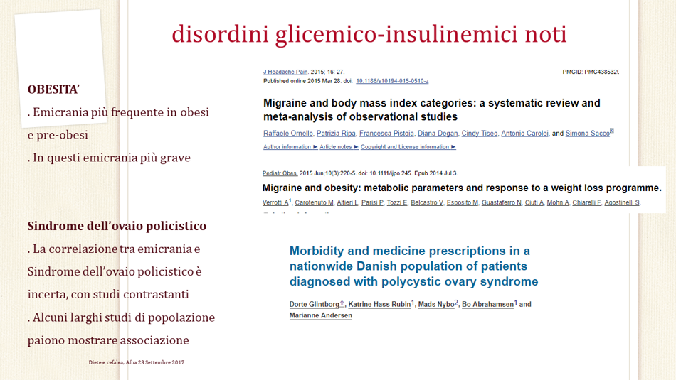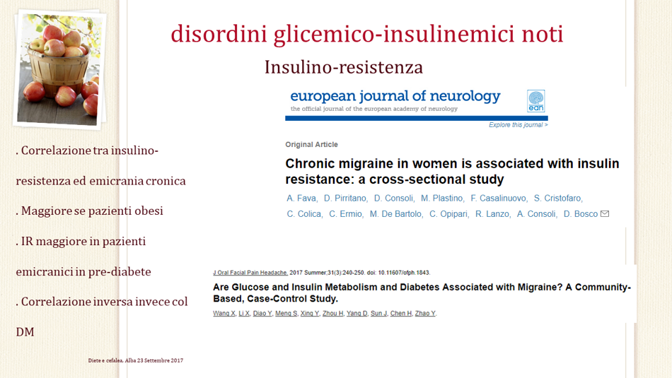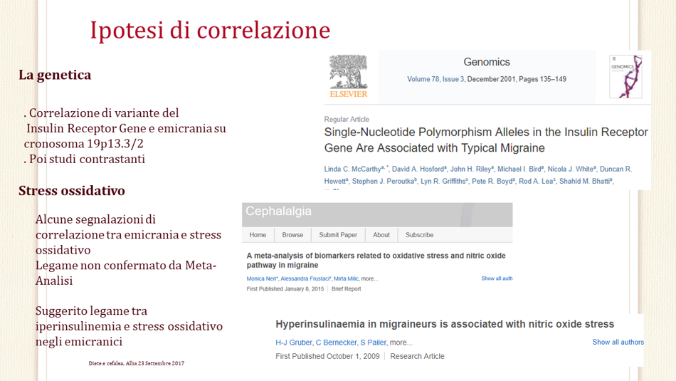 A seguire pochi altri studi avevano considerato l’iperinsulinemia di per se, a volte alla ricerca di marcatori che spiegassero il collegamento con l’emicrania, come ad es un aumento correlato di ossido nitrico.