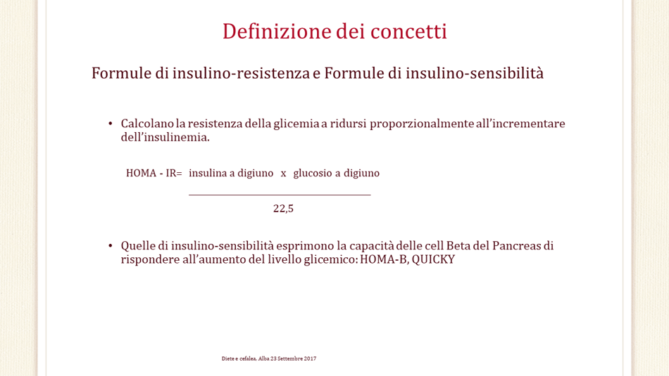 Esistono vari test applicabili per il calcolo dell’ Insulino-Resistenza (IR) e insulino-sensibilità. Quelli a più diffuso utilizzo sono l’HOMA e il QUICKY.