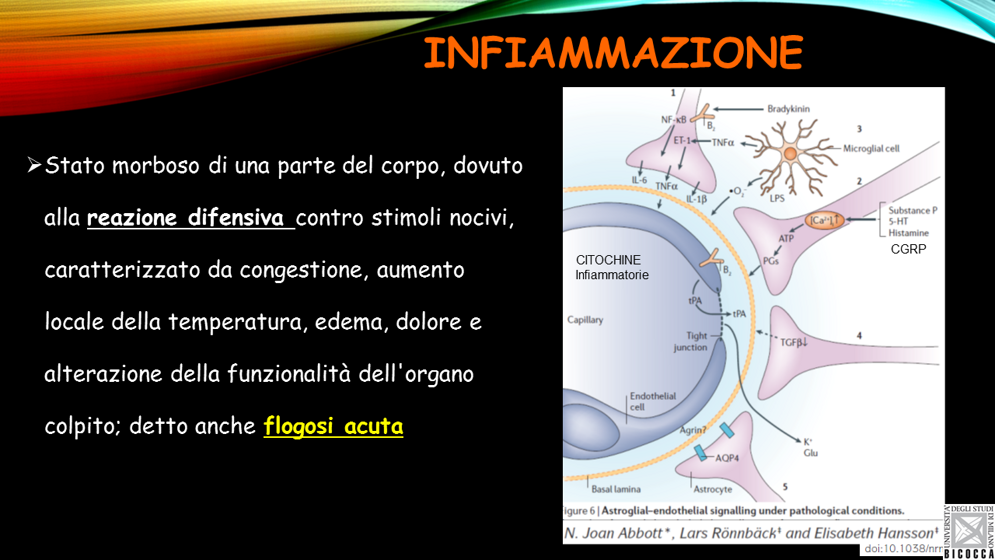 L’infiammazione è uno stato morboso di una parte del corpo, dovuto alla reazione difensiva contro stimoli nocivi, caratterizzato da congestione, aumento locale della temperatura, edema, dolore e alterazione della funzionalità dell'organo colpito; è anche detta anche flogosi acuta.