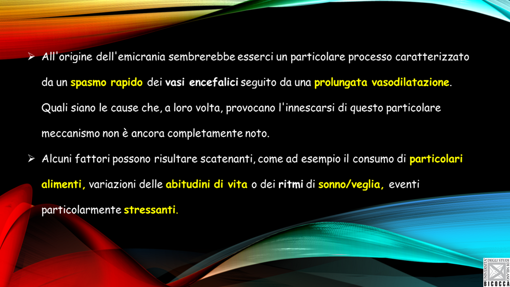In conclusione si può affermare che i sintomi della cefalea possono sorgere da una combinazione di 2 eventi: una vasodilatazione che può essere indipendente dai fenomeni vascolari e meccanismi neurogenici che interagiscono nel cervello all’interno del sistema trigeminovascolare e a livello delle meningi.