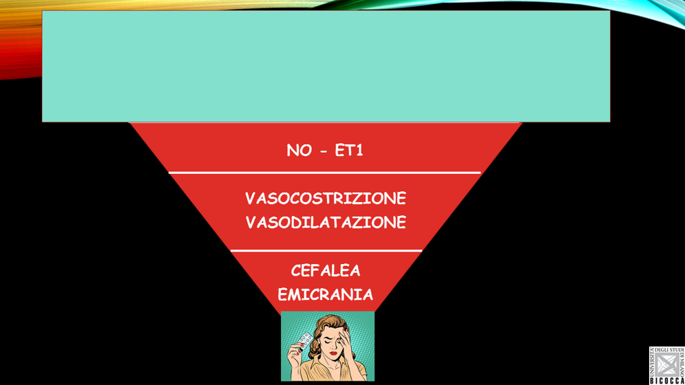 Secondo questo schema classico l’insorgenza dell’emicrania è strettamente correlata a vasocostrizione e vasodilatazione e le molecole maggiormente implicate in questi meccanismi sono l’ossido di azoto -NO- e l’endotelina 1 -ET1-.