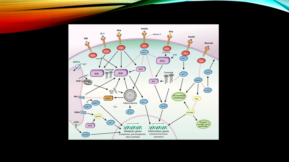 Questi eventi biochimici sono quelli che si instaurano nel diabete di tipo II, nell’obesità in breve in quella che viene chiamata Sindrome Metabolica.