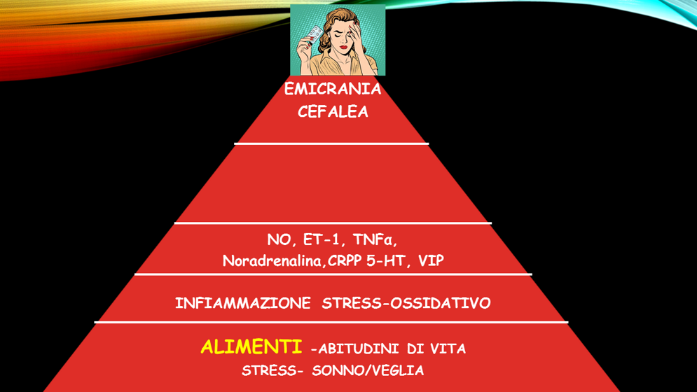 L’emicrania, quindi è una condizione patologica al cui instaurarsi concorrono 2 fattori principali; l’infiammazione/stress ossidativo e la depressione corticale ma è noto che diversi fattori esterni possono fungere da trigger. Questi sono fattori ambientali e lo stile di vita che comprende alcuni alimenti, tabacco, alcol, sonno/veglia e stress.