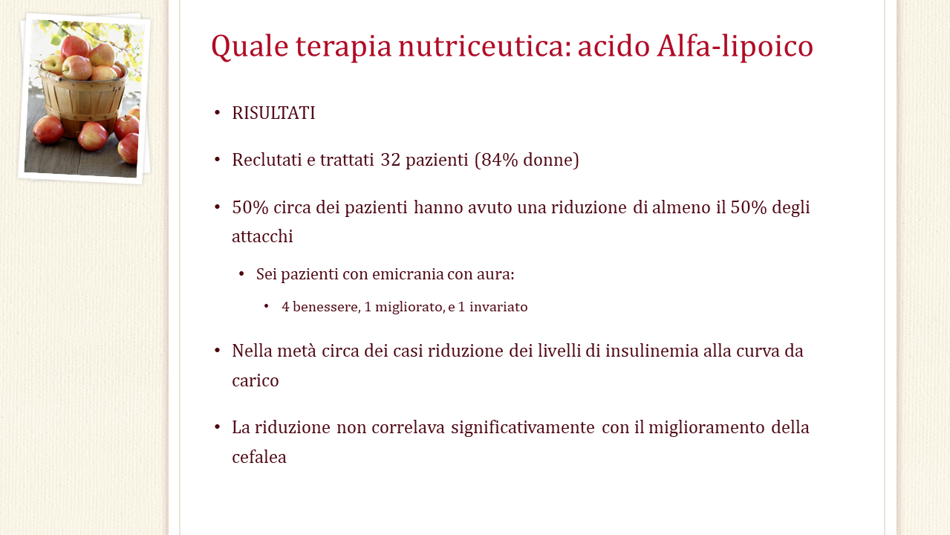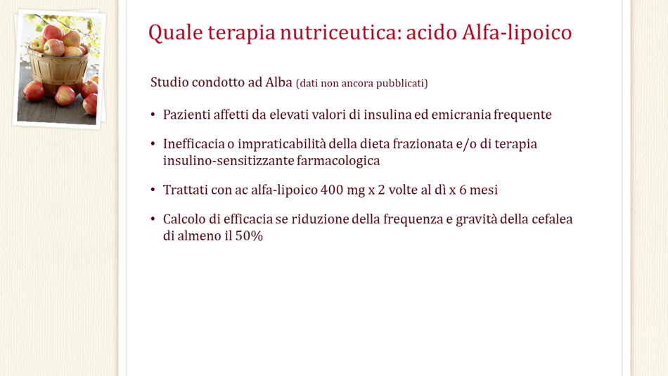 Dieta frazionata nel soggetto iperinsulinemico cefalalgico: la nostra casistica