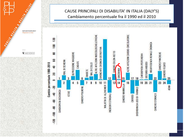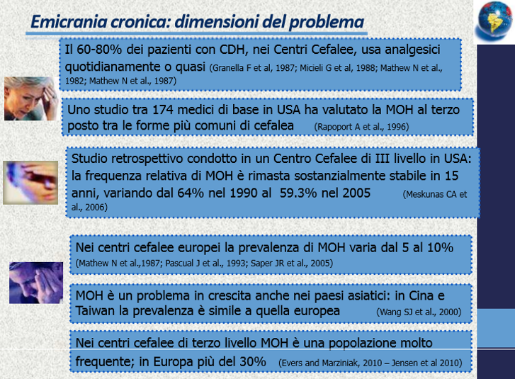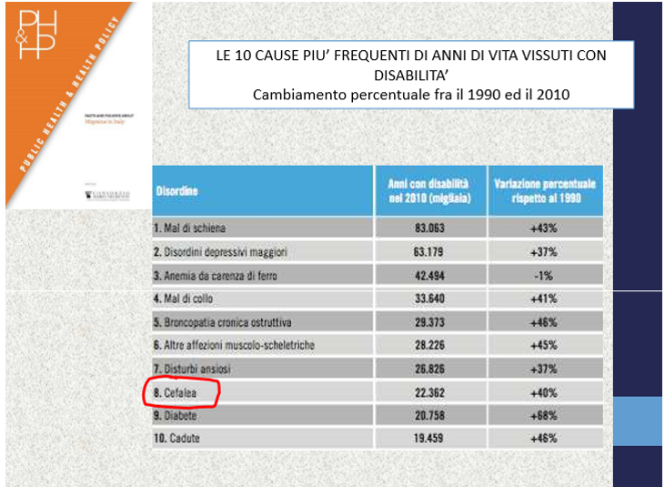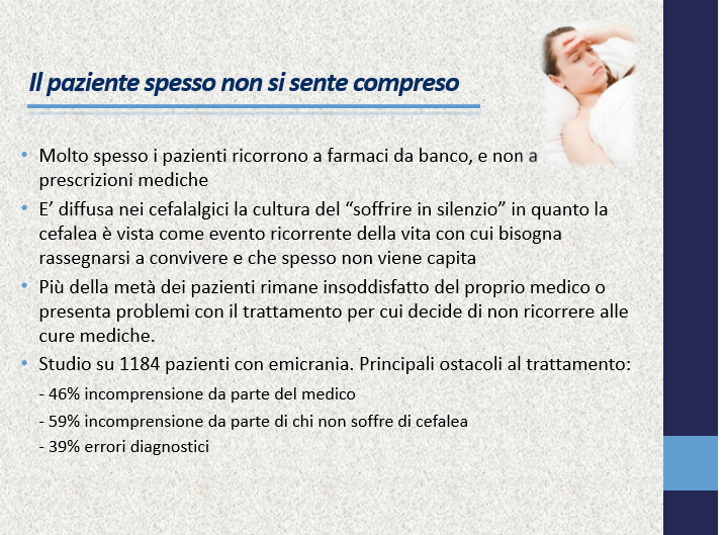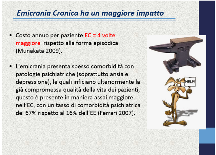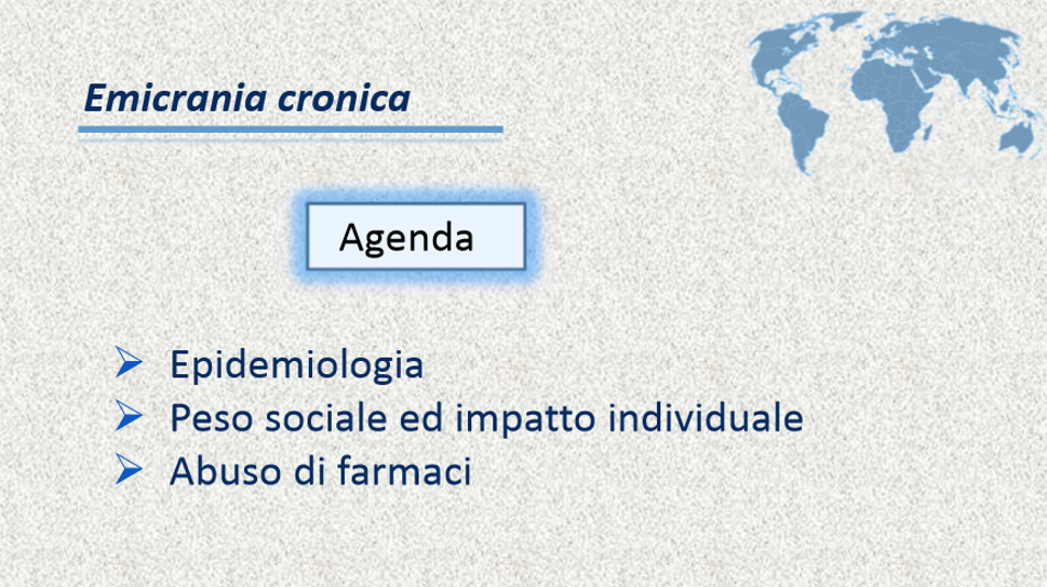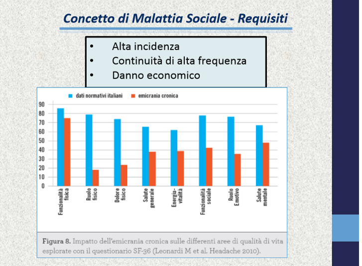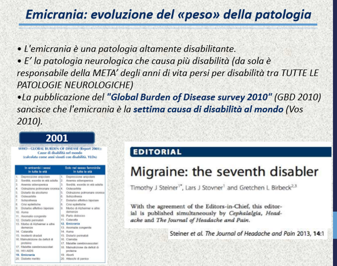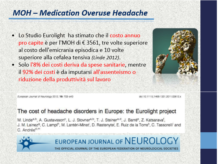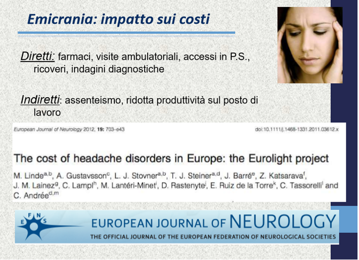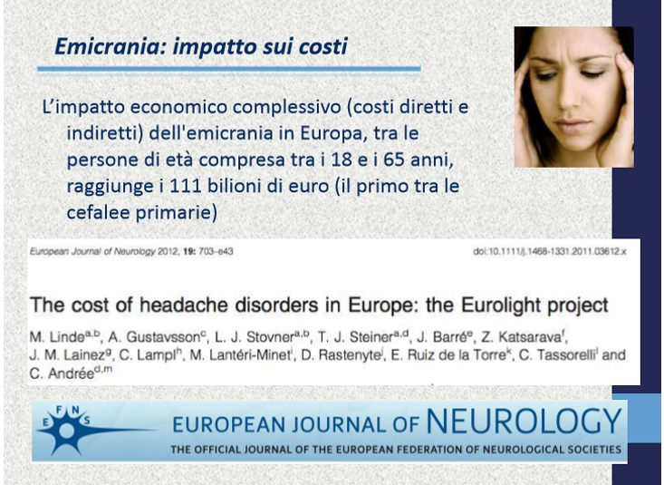 La cefalea in generale, l'emicrania in particolare e la forma cronica soprattutto, sono un male sociale ad alto costo e disabilità.