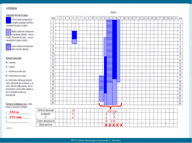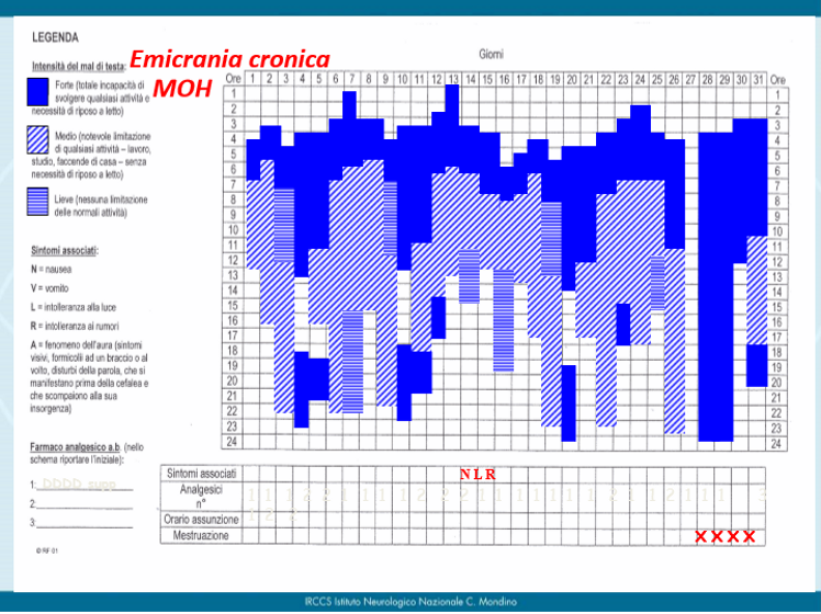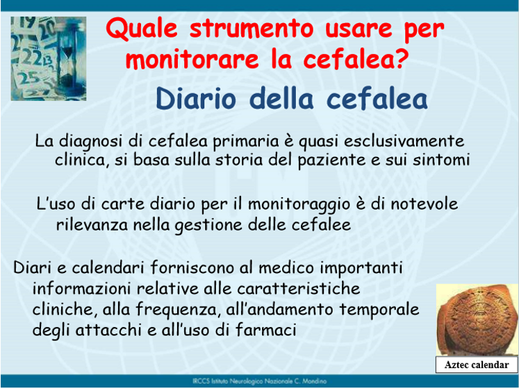 Infine spiega come serva uno strumento di monitoraggio della cefalea, che è il diario della cefalea.
