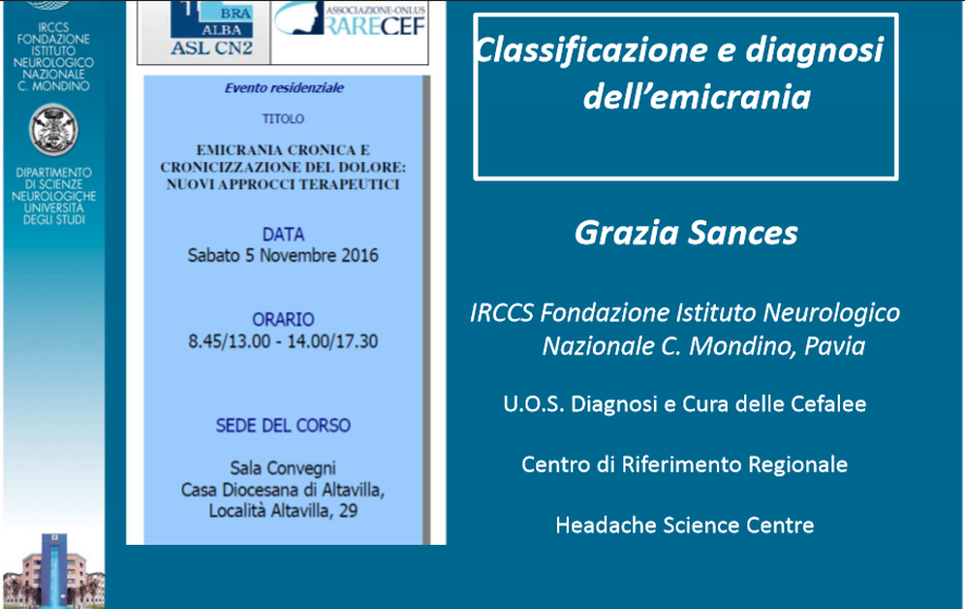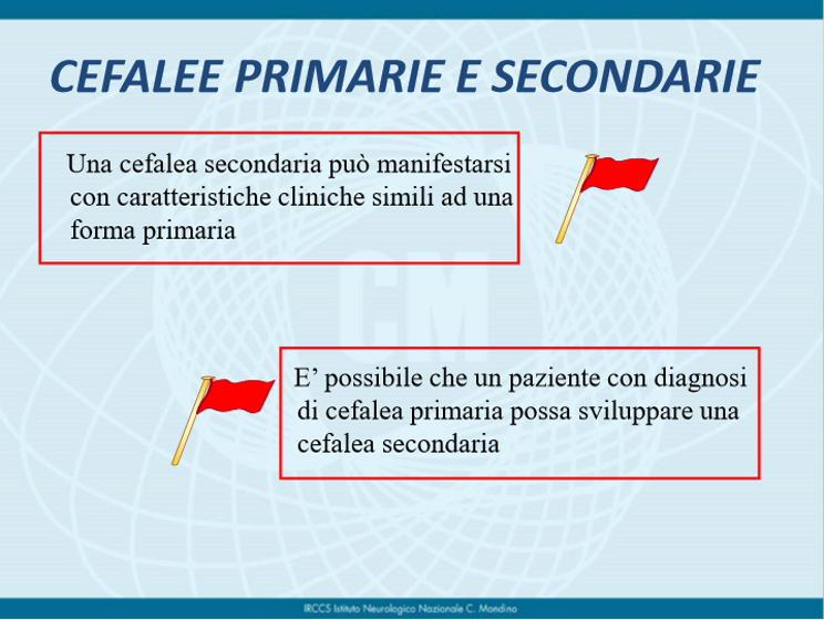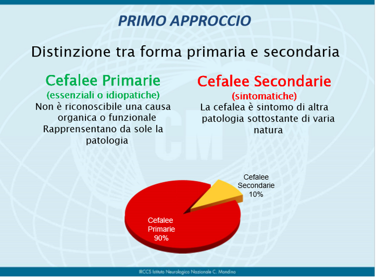 Nella relazione la Dr.ssa Sances affronta il tema della diagnosi differenziale tra cefalee primarie e secondaria, e di come una cefalea secondaria possa anche presentarsi con caratteristiche simili alle cefalee primarie.