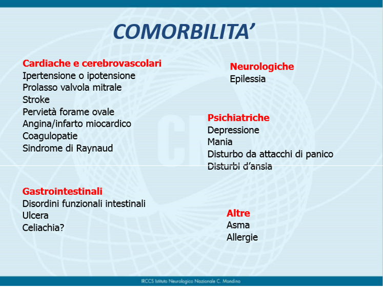 L'emicrania è co-morbida con diverse altre malattie, che vengono descritte.