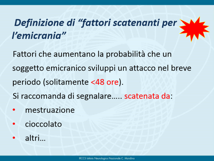 Con questo termine si intendono quei fattori che aumentano la probabilità che un soggetto emicranico sviluppi un attacco nel breve periodo (solitamente <48 ore).