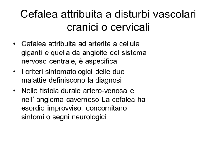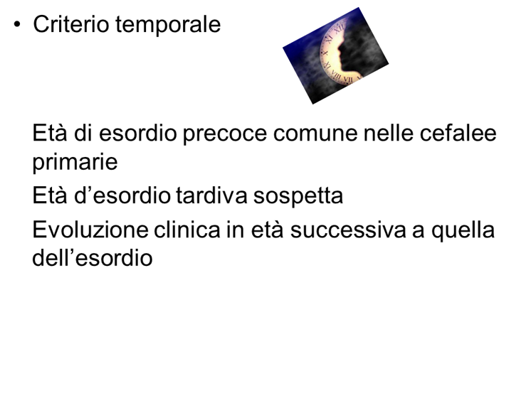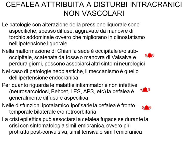 la presenza di questi segni o sintomi deve costituire un segnale d'allarme per pensare ad alcune condizioni pericolose che possono sottostare ad una cefalea di nuova insorgenza.