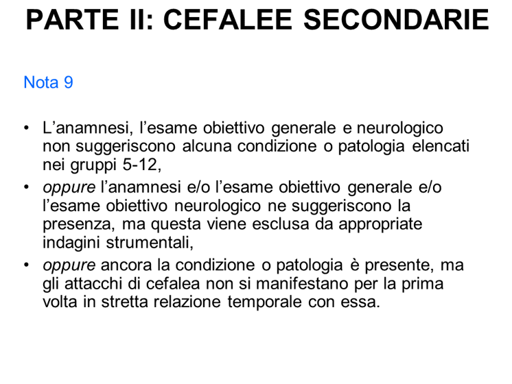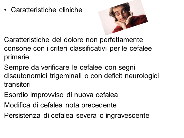Il medico deve sospettare la natura secondaria e la pericolosità della cefalea, in presenza dei cosiddetti “segnale d’allarme”, ovvero delle seguenti situazioni cliniche: