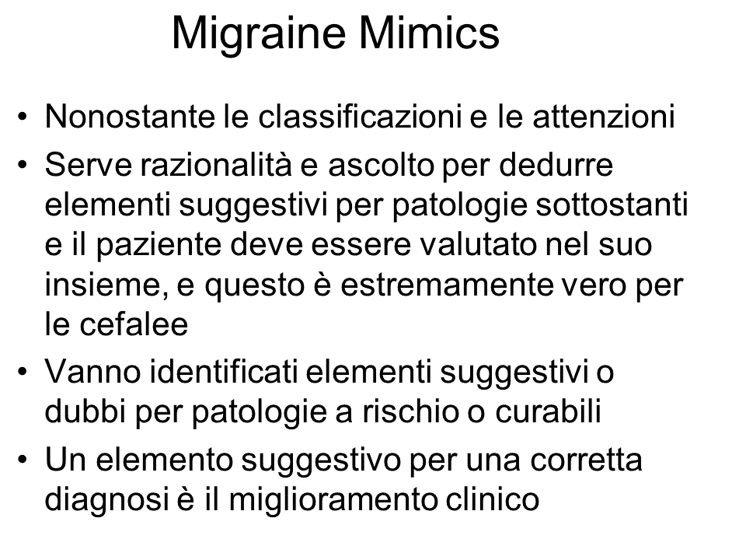 In generale esiste la convinzione tra gli esperti che una cefalea moderata - severa, ricorrente, è un'emicrania fino a prova contraria.
