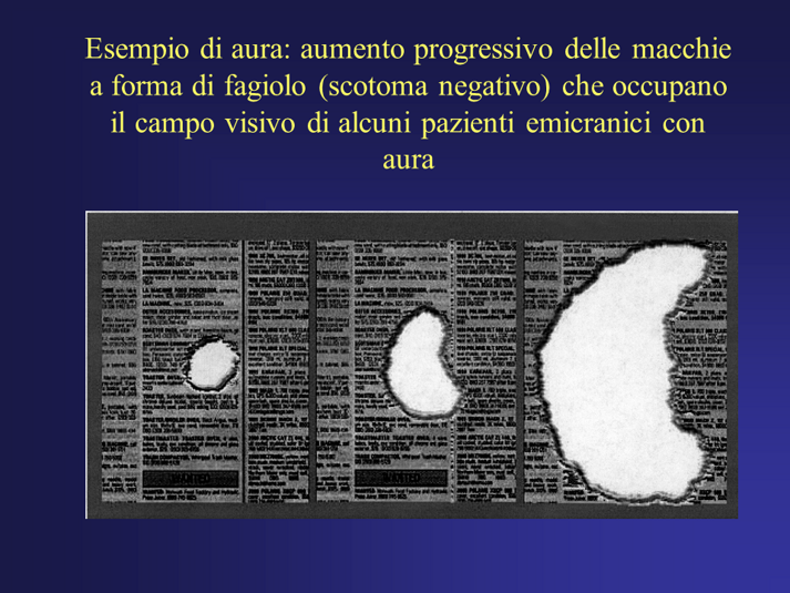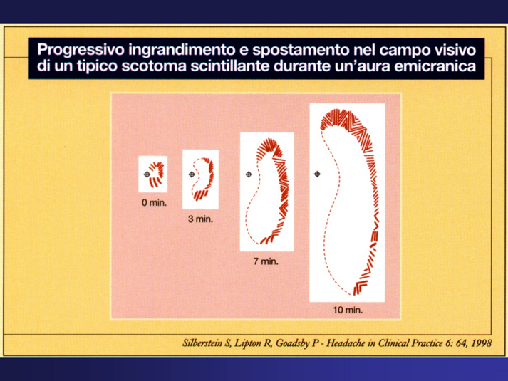 Si definisce AURA un deficit neurologico focale dela durata di 5-60 minuti che si presenta isolato o precede immediatamente la cefalea.